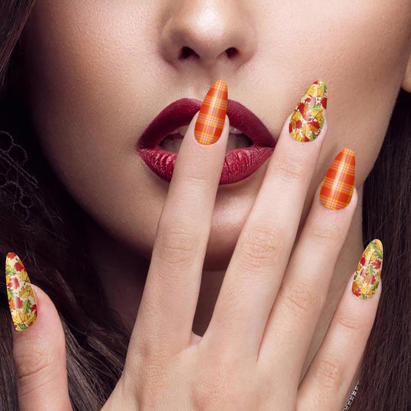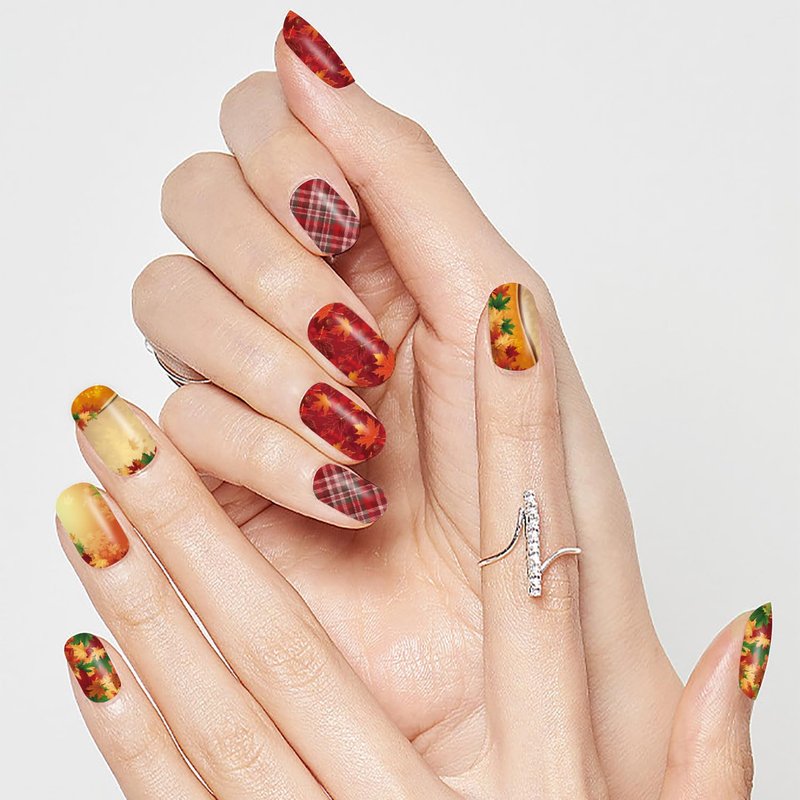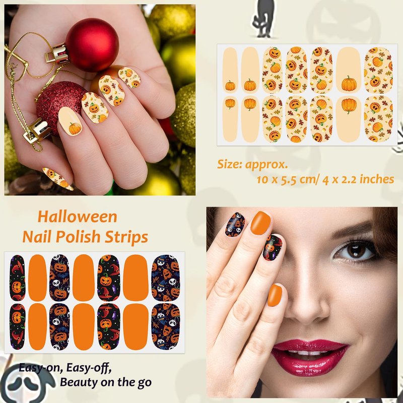 XEAOHESY 30 Sheets Maple Leaf Theme Halloween Stick On Nail Polish Strips with Nail File Nail Stickers Decals Holiday Full Nail Wraps for Women Halloween Nail Art