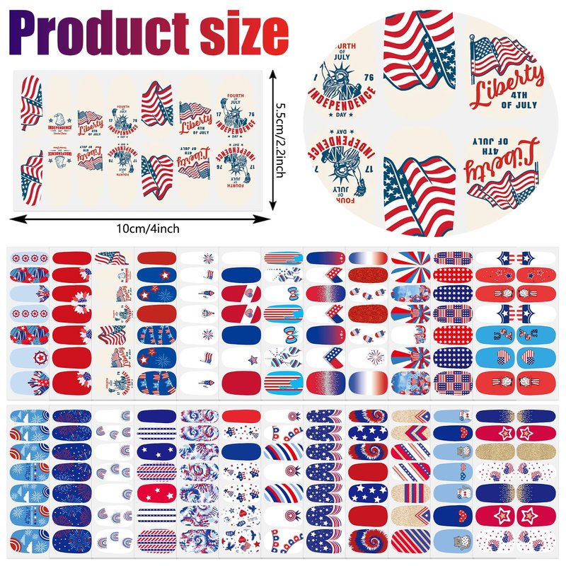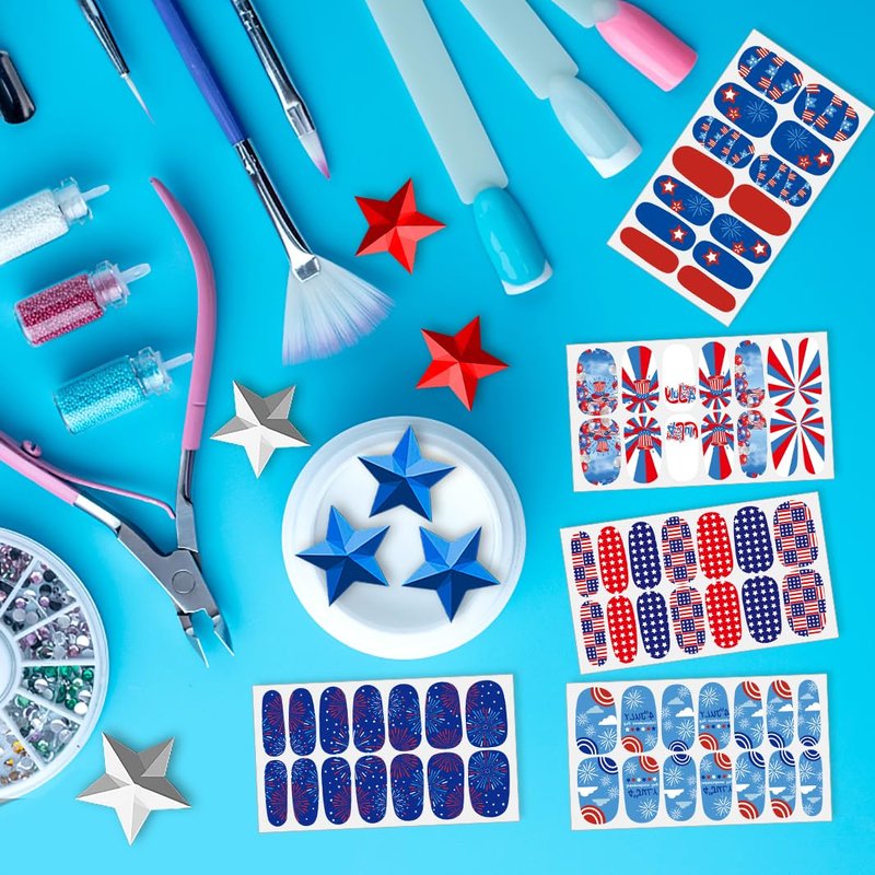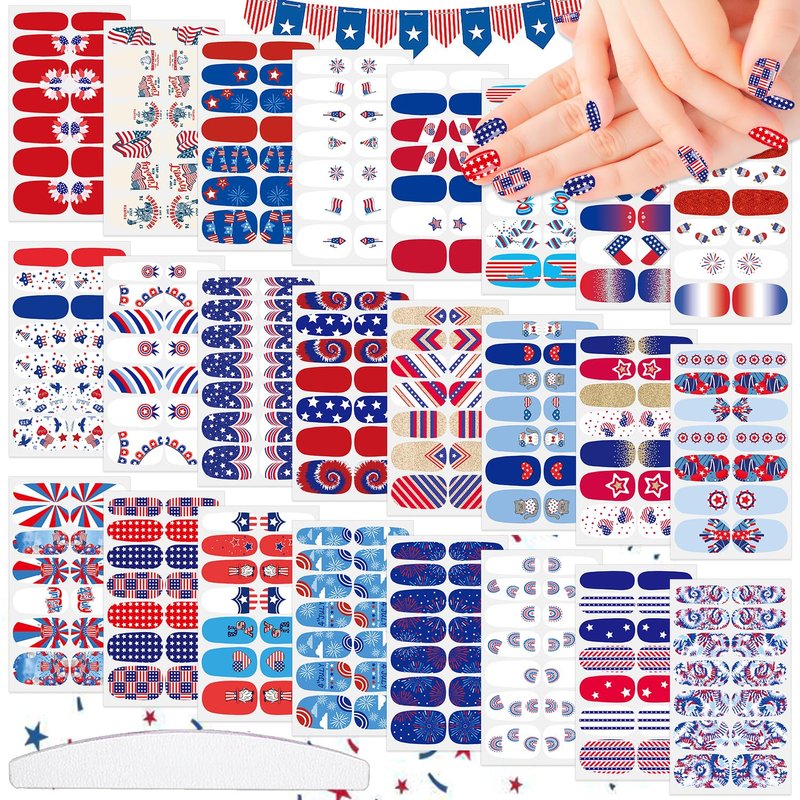 XEAOHESY 336 Pieces 24 Sheets 4th of July Nail Wraps Independence Day Nail Polish Strips American Flag Patriotic Nail Strips Self-Adhesive Nail Polish Stickers for Memorial Day