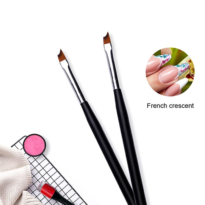 XEAOHESY 5pcs French Tip Nail Brush Set Half Moon Shape Silver Handle Oblique Head Black Handle Nail Brushes Red Wooden Handle Gel Builder Ombre Brush for Nail Manicure Tools