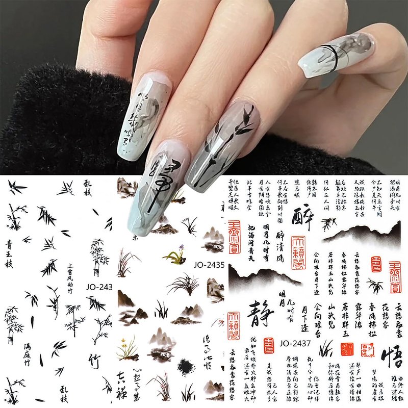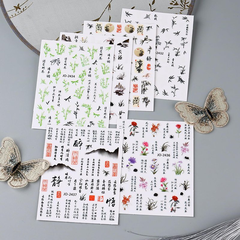 - 【Chinese Classical Nail Decals】:Come with 6 sheets Chinese classical nail stickers. Designed with the theme of Chinese classical series elements, including ink landscape painting, chinese characters, bamboo, orchid etc. A large number of different patterns for you to use.