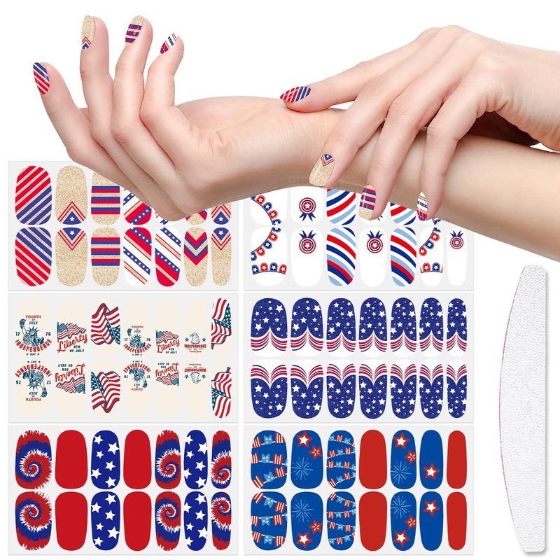 XEAOHESY 84 Pieces 6 Sheets 4th of July Nail Polish Strips Patriotic Nail Wraps Independence Day Nail Strips Self-Adhesive Nail Polish Stickers for Memorial Day(Style-2)