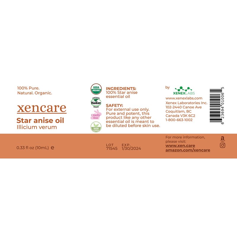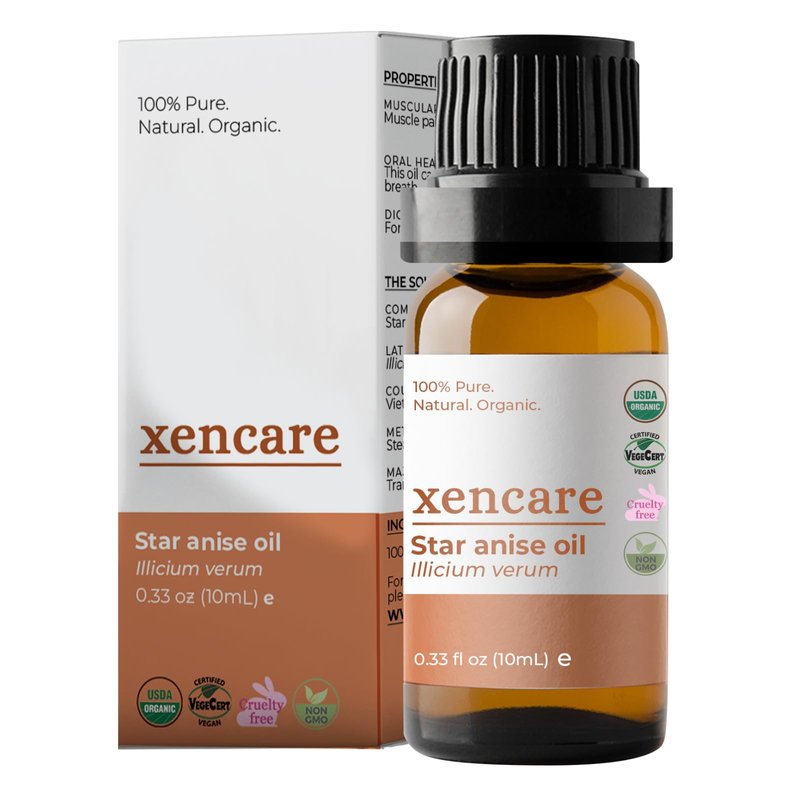 xencare Star Anise USDA Organic Food Grade Essential Oil | 100% Pure Natural Undiluted | | Premium Aromatherapy for Diffusers Baths & Topical Use (0.33 fl oz, 10ml)
