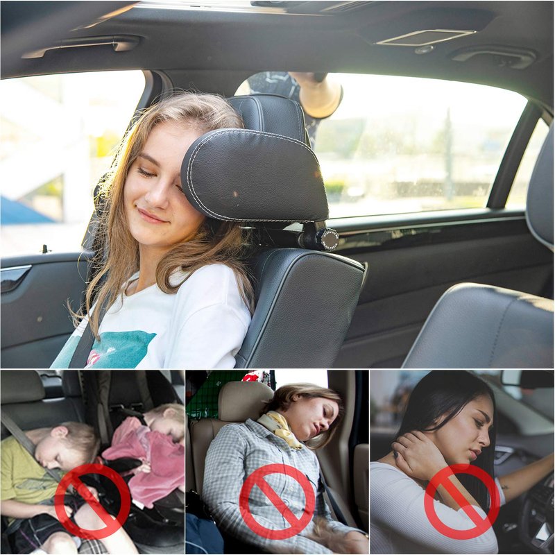 - Adjustable Headrest: This car pillow supports 360° rotation adjustment. It can be adjusted as much as possible according to height to ensure that it is suitable for children and adults of different heights. When you're not using it, just lift the headrest up for storage - save space.