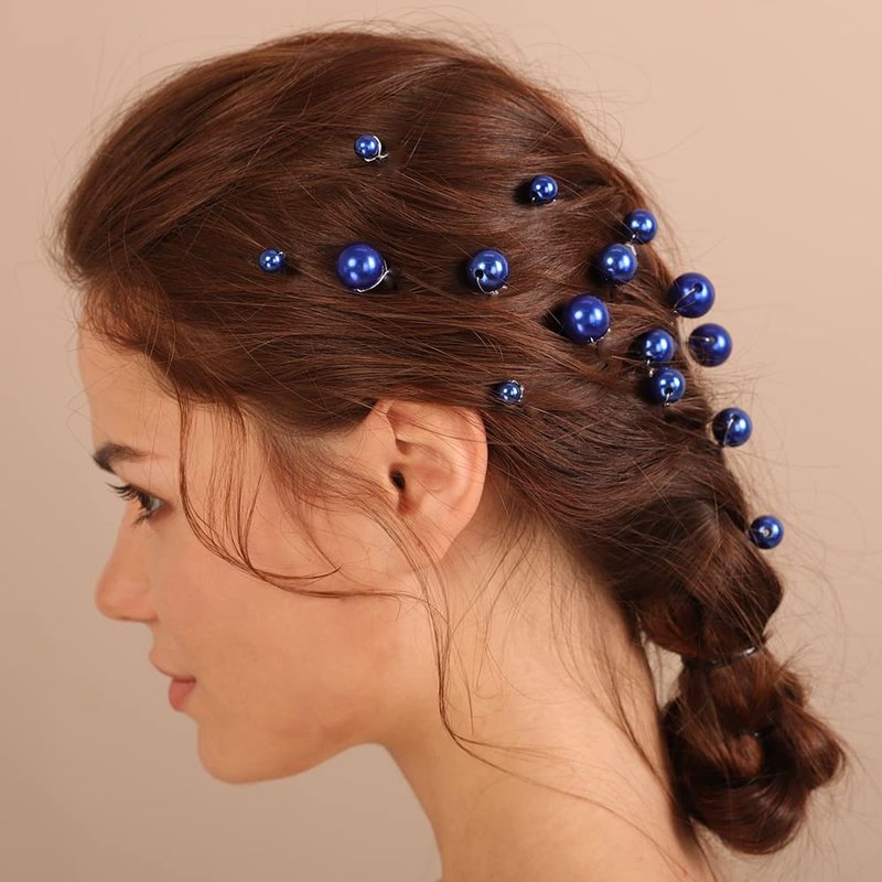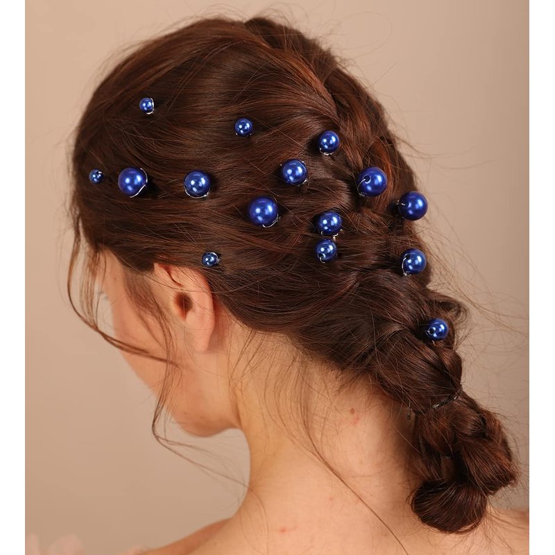 Xerling 20Pcs Pearl Hair Pins Bride Wedding Hair Pieces Blue Hair Accessories for Girls Boho Women Headpiece (Blue)