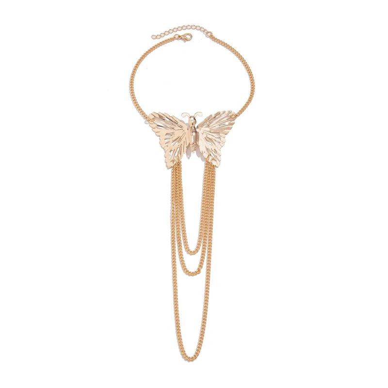 Xerling Boho Hollow out Butterfly Arm Bracelets Chains Tassel Armband Armlet Upper Arm Band Festival Costume Jewelry for Women (Gold)