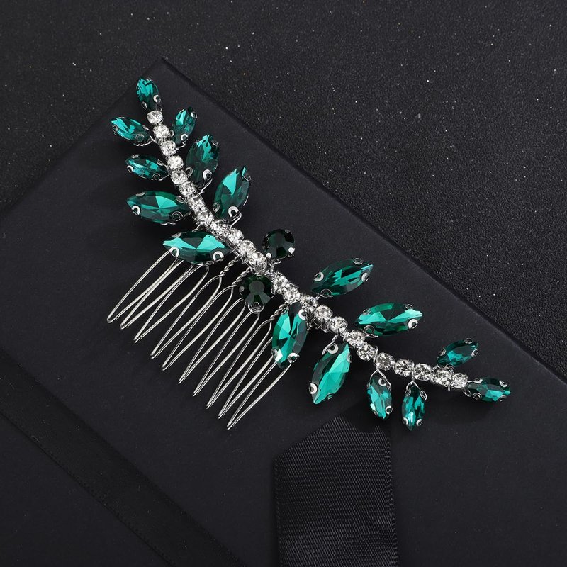 Xerling Brides Wedding Hair Comb Handmade Green Rhinestone Crystal Hair Side Comb Bridal Hair Pieces Boho Headpiece Hair Jewelry Accessories for Women Flower Girls (Green)
