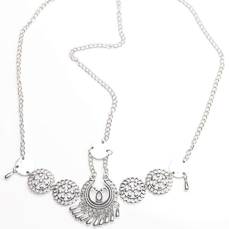 Xerling Flower Head Chain Floral Coin Headpiece Teardrop Tassel Hair Accessories for Women Gilrs Costume Festival Headband Jewelry (Silver)