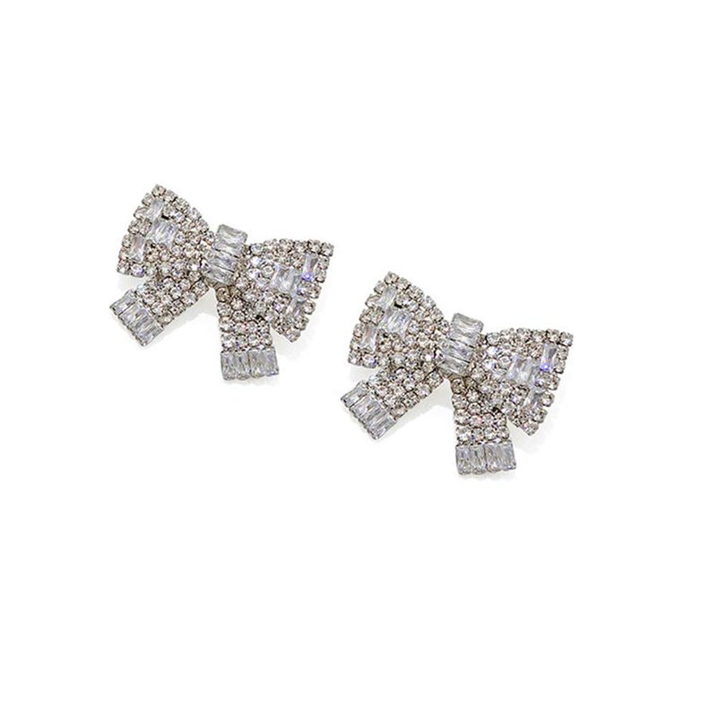 Xerling Pave Crystal Bowknot Stud Earrings Rhinetsones Bow Tie Earrings Delicate Fashion Jewelry for Women Girls Bridal Cute Charm Big Bowknot Hoop Earrings (Silver)