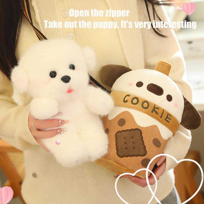 - Two-piece set: our stuffed dog plush consists of a soft milk teacup backpack and a cute puppy plush toy, inside which the puppy plush toy can be taken out.