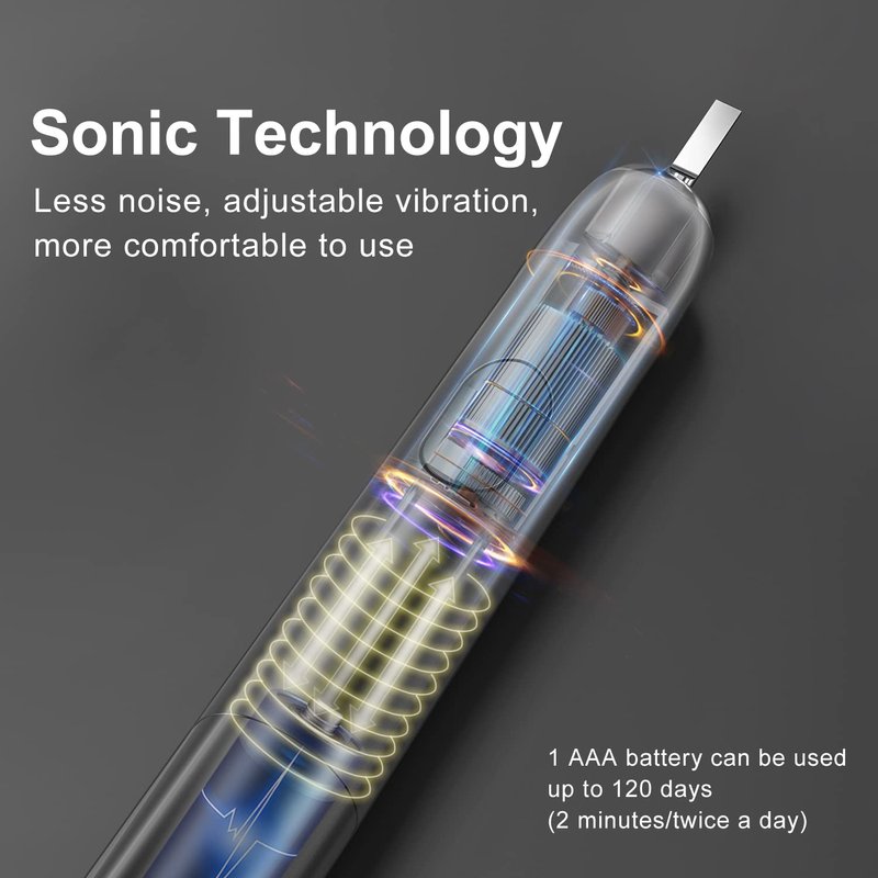 - 3 replaceable sonic toothbrush heads and the battery life last for 120 days , which is suitable for travel and business trips without bringing an adapter.
