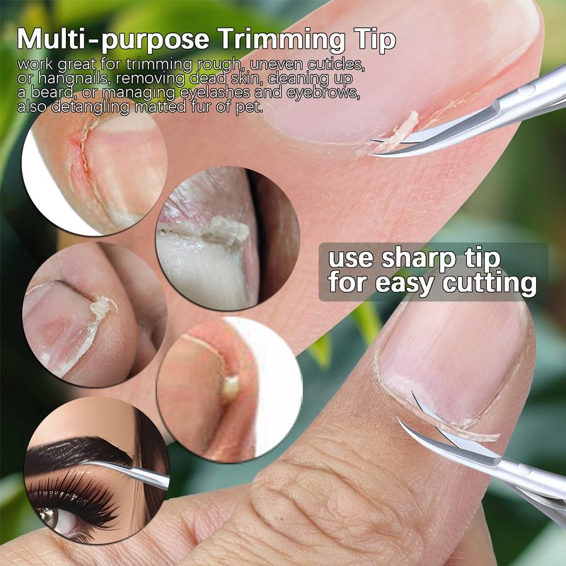 - Multi-purpose Trimming - Manicure or pedicure on fingernails and toenails, work great for trimming over grown cuticles or hangnails, removing rough, uneven cuticles, dead skin, cleaning up a beard, or managing eyelashes and eyebrows, also such a nice tool for detangling matted fur of pet; Whether it's a professional nail salon or doing your own nails, you need this tiny small scissors beauty, it also nice cosmetic scissors;