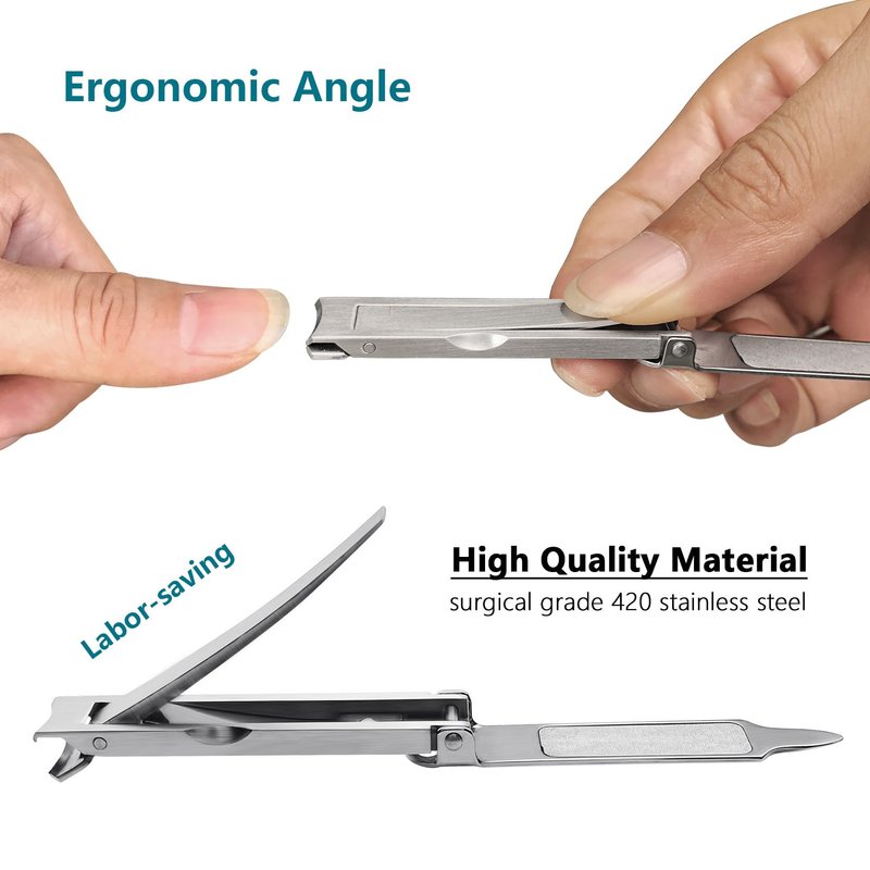 - 【Foldable and Flip to Open】Folding to get ultra thin rerult, and flip handle up to open and directly use, very easy to trim nail clippers;