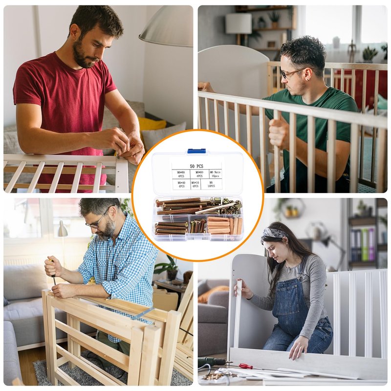 🔩 Crib hardware screws are made of high-quality carbon steel, color zinc, durable and not easy to break.