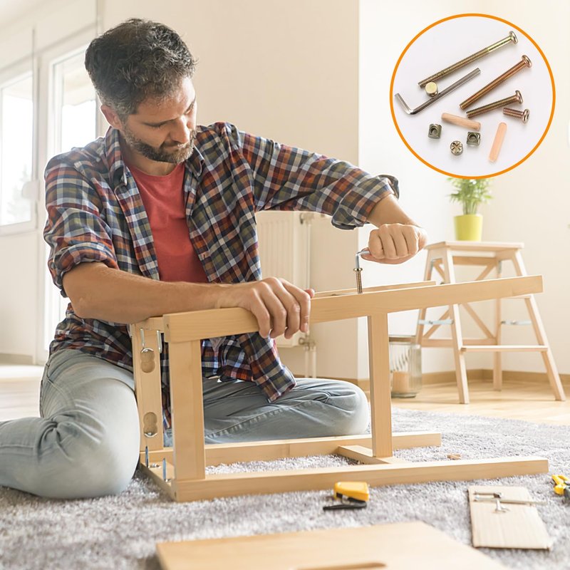 🔩 The hexagon socket head screws perfectly match the barrel nuts, the threads are precise and tight, and the force is evenly distributed, providing a solid connection for your furniture.