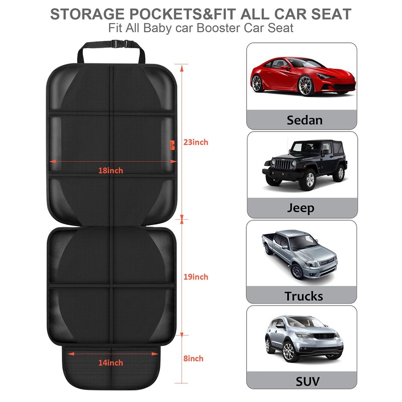 - 【STEADY QUALITY & THICKER】The car seat cover has a unique slide-proof construction to ensure safety and it quickly installs to any car with adjustable straps that fasten to the headrest. The car seat protector won't move once installed, so don't worry about that your child's car seat will slip from on the cover.