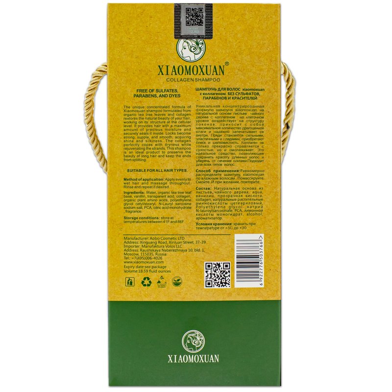 Xiaomoxuan collagen shampoo is the unique concentrated formula of the Xiaomoxuan shampoo formulated from organic tea tree leaves and collagen. It restores the natural beauty of your hair, working on its’ structure at the cellular level. It provides hair with a maximum amount of precious moisture and securely seals it inside. The locks become strong, supple, and smooth, acquiring shine and silkiness. The collagen perfectly copes with dryness while rejuvenating the strands. This shampoo is an ideal product to preserve the beauty of long hair and keep the ends from splitting. Suitable for all hair types.