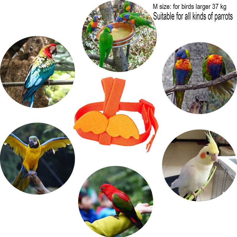 - 【Size】The parrot flight harness M is suitable for peony parrots and similar-sized birds, such as parakeets, cockatiels, conures, lovebirds, budgies, finches, mini macaws, cockatoos, and etc.