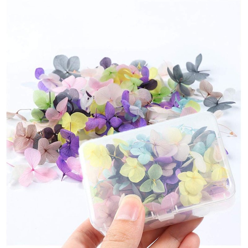 - Package includes:100PCS / box Hydrangea petals flowers with 1 pc curved tweezers. 100% Brand New high quality!Dried flower shape in different colors