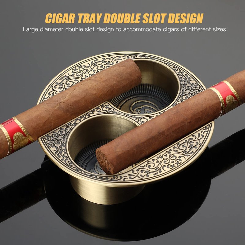 - ❤️【Unique design,Easy To Clean】➤The modelling design of vintage fashion,follow the cigar supplies of the past. Excellent Craftsmanship And Solid Construction.Fashion vintage cigar ashtray cigar tray double slot design.Durable and easy to clean, Pattern on the cigar ashtrays are exquisite and will not fade. when ash is full, just a quick rinse of water and a wipe with a paper towel. It cleans up well and ash doesn't stick to it.