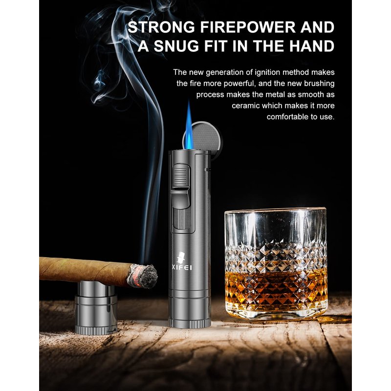 XIFEI Cigar Lighter, Cigar Puncher, Cigar Draw Enhancer, Cigar Stand, All-in-one Lighter (Gun ash)