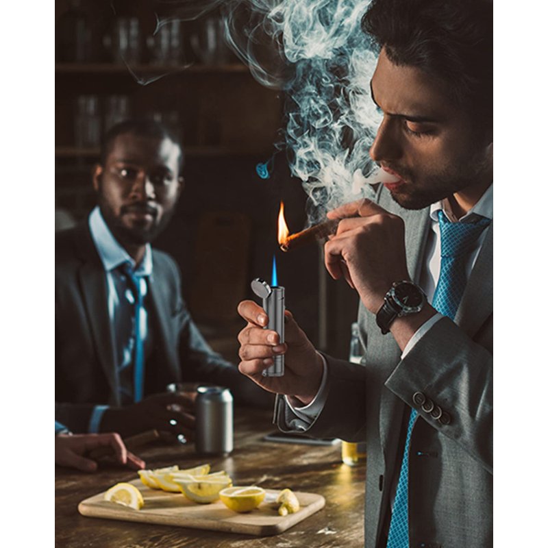 - Powerful Flame: Super firepower, jet blue flame butane torch windproof lighter, exquisite appearance, gift box packaging. This is the perfect gift for cigar lovers on Christmas, Wedding, Father's Day, Thanksgiving Day, Birthday, Anniversary, etc