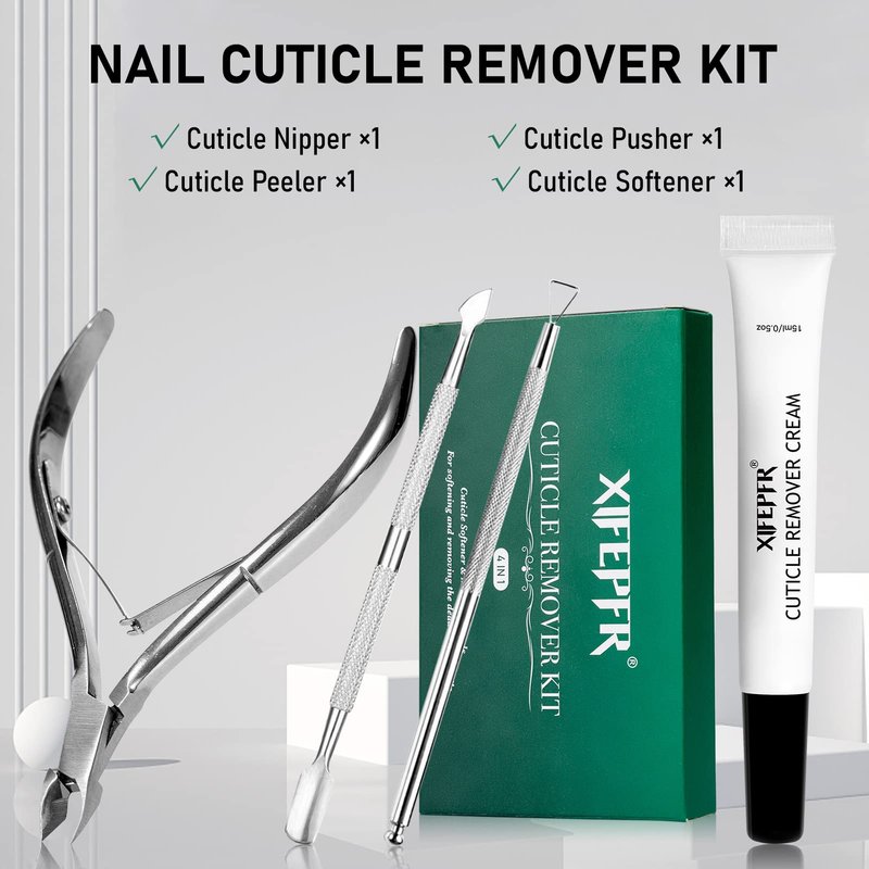 - 4 in 1 Cuticle Remover Kit: XIFEPFR cuticle care kit provides you 15ml cuticle remover cream, cuticle nipper, cuticle pusher, cuticle peeler. Whether softening cuticle or removing cuticle, this kit can satisfy Your nail care needs. Suitable for professional salon beauty store or home use.