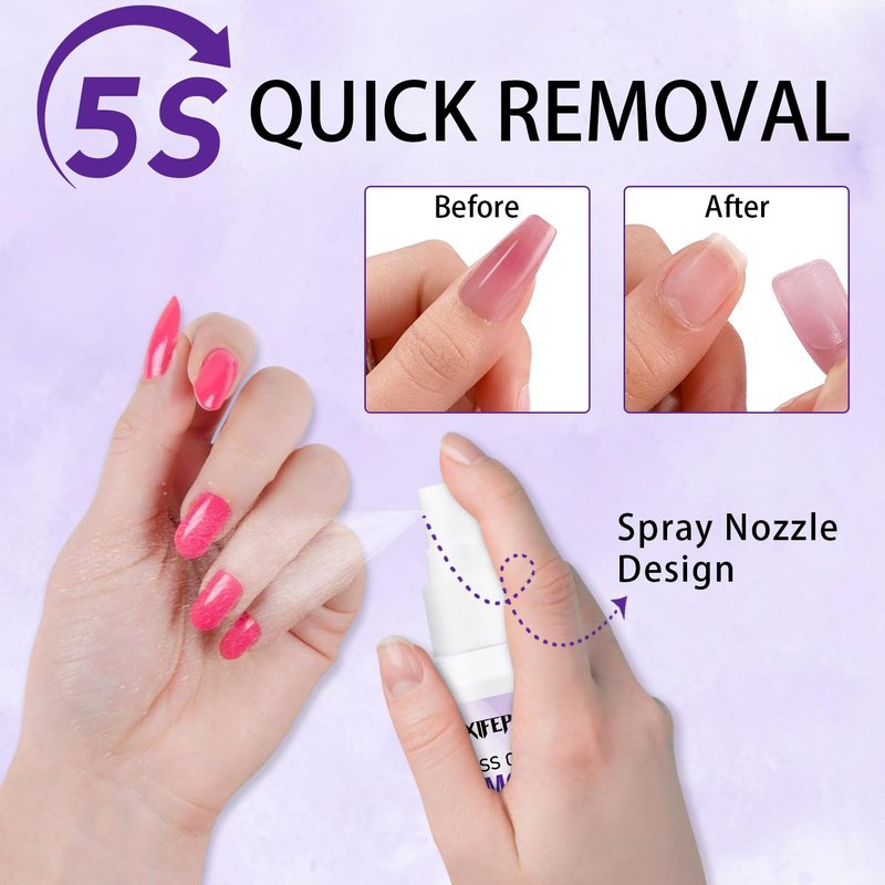- Spray Design: Featuring a nozzle design, you can spray the nail glue remover more precisely and quickly without wasting it, making the removal process more convenient. It also prevents air dust from getting into the liquid, making it more hygienic.