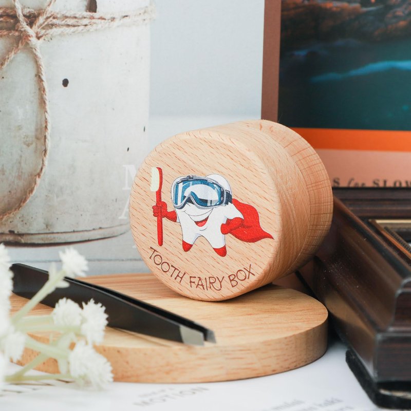 XIHIRCD Wooden Tooth Box, Cute Tooth Keepsake Box Baby Tooth Storage Organizer Dropped Tooth Case Holder to Put Under Pillow for Children Boys Girls (Superman Style)