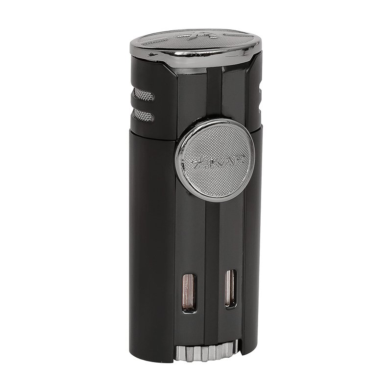 The High Performance supercar-inspired HP4 Lighter was engineered to deliver optimum performance and output. The dominant appearance of the HP4 embodies a newly designed chassis. An in-line fuel adjustment wheel, oversized double EZ-View red fuel windows and four angled jets create an apex of precision engineered flames to concentrate heat and efficiently light any cigar with confidence. The manual flip-top lid not only protects the quad jets, but also retracts more than 90 degrees ensuring plenty of room to light small or large ring gauge cigars.