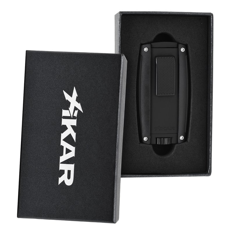Xikar Turismo Double Jet Flame Cigar Lighter, Attractive Gift Box, Pocket-Friendly, Protective Flip-Lid, Over-Sized Fuel Tank, Matte Black