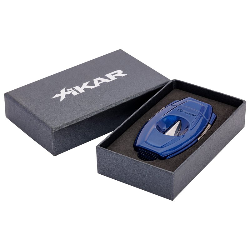 Xikar VX2 V-Cut Cigar Cutter, Up to 70 Ring Gauge, Built-in 64RG Bowl, Stainless Steel Blades, Attractive Gift Box, Ergonomic Design, Secure-Lock, Spring-Loaded, Blue