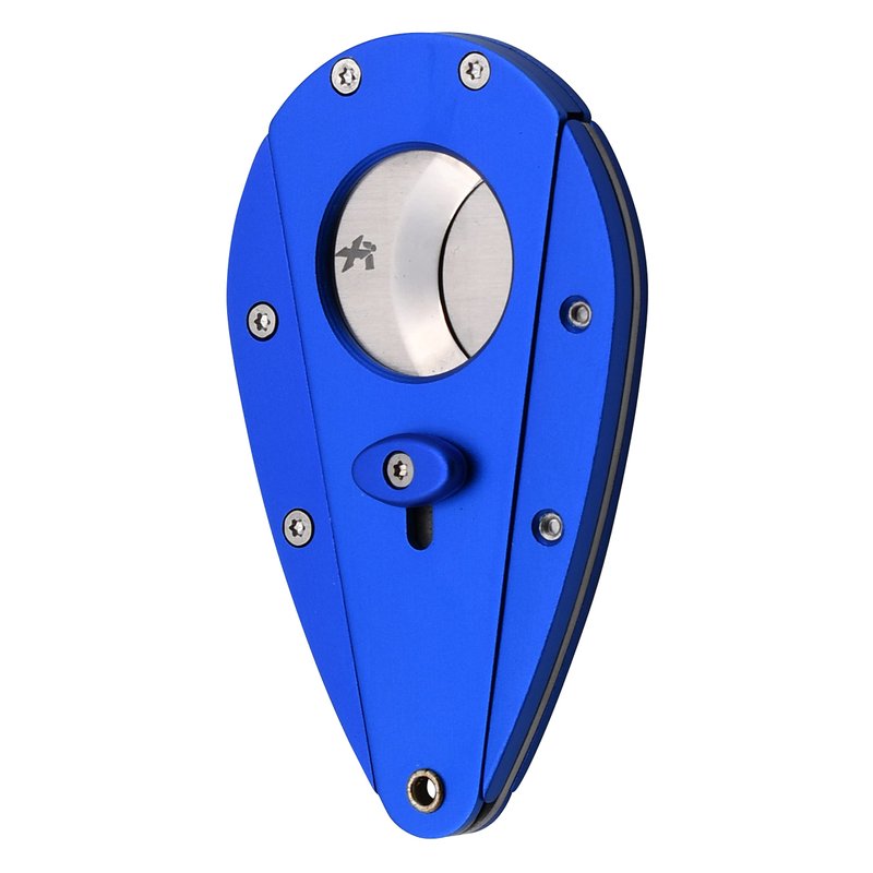 A stylish, lightweight aluminum body encases the hardest, sharpest double guillotine blades in a spring loaded, ergonomic teardrop shape that will fit comfortably in your hand for a perfect cut every time. XIKAR Xi1 cigar cutters are bold, masculine and beautifully engineered. Their unique teardrop shape and double guillotine action offer powerful cutting ability in one simple squeezing motion. All Xi Cutters feature 440C stainless steel blades with a Rockwell HRC 57 rating: they will cut a 54 ring gauge cigar in half. Depending on how much cap you cut, they will cut up to a 60 ring gauge cigar.