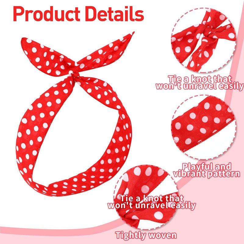 - Package Contents: Polka dot headbands for women come with 2 pieces of wire headbands in red polka dot bandana with white dots and black with white dots, which is convenient for you to choose and change.