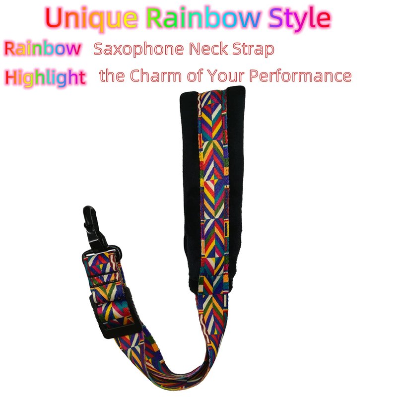 ♪.UNIQUE RAINBOW STYLE sax neck strap, ergonomic constructed, it can not only protect your neck during your performance but also highlight the charm of your performance.