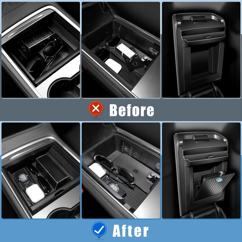 - 【High Quality Material】XINTUO center console organizer tray replacement for Tesla model 3 model Y accessories is made of high-quality ABS plastic shell which is sturdy and durable,provide excellent weight capacity and matte finish.We additionally provide odorless silicone pad inner which is soft to touch,anti-slipping,anti-rattling keeping items in place and silent when you accelerate or brake.