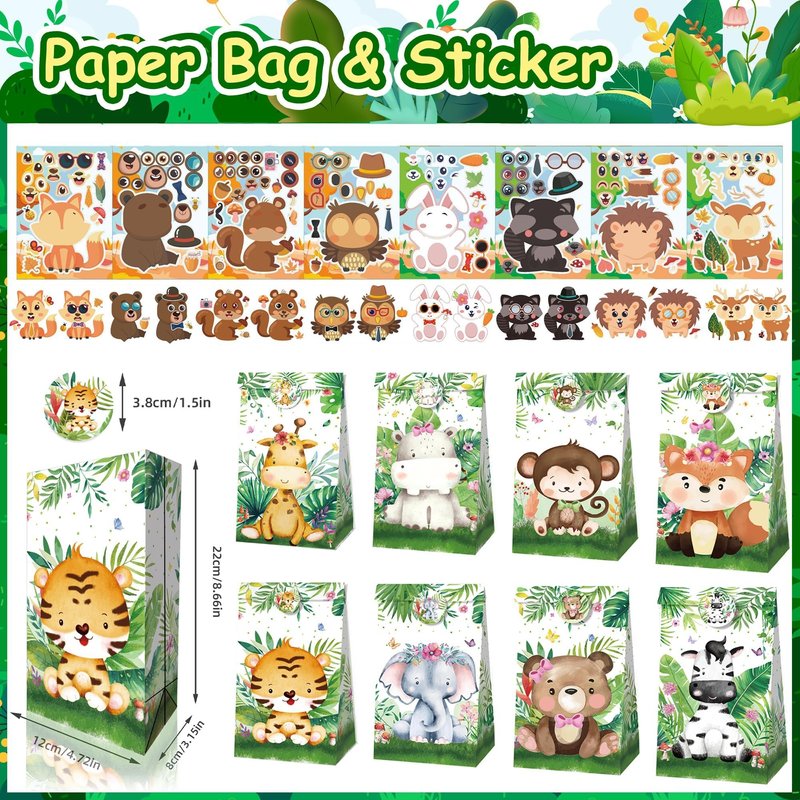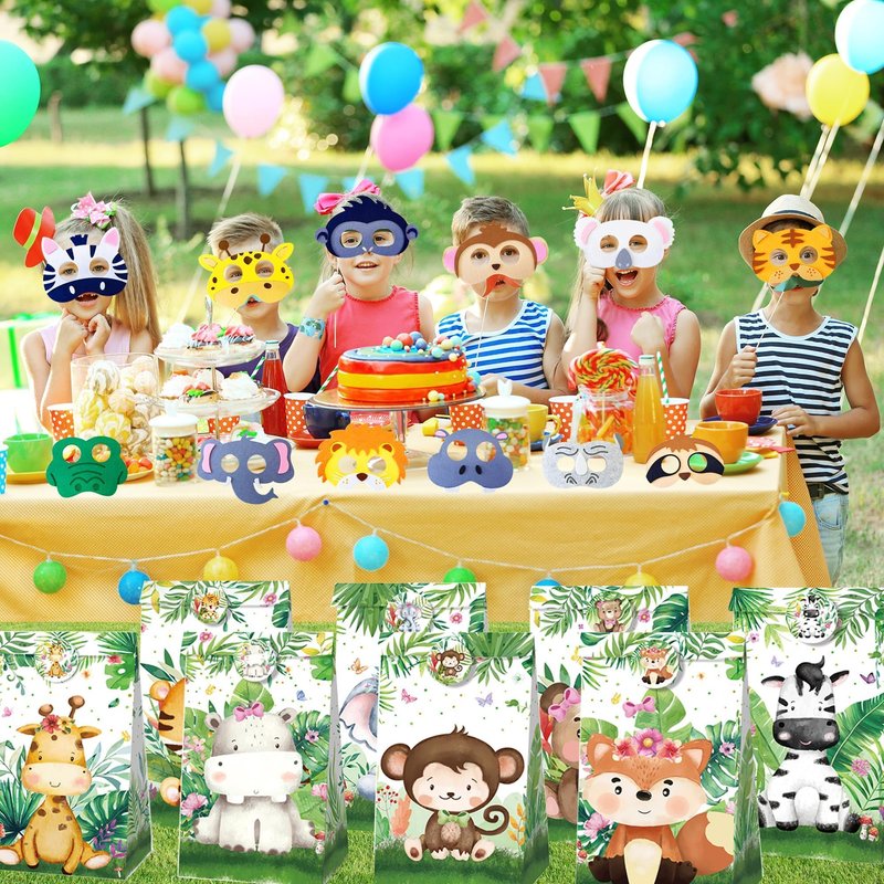 88 PCS Jungle Safari Party Favors Set Wild Animals Theme Gift Bags Masks Stickers Slap Bracelets for Birthday Baby Shower Goodie Bag Fillers Jungle Safari Party Supplies
