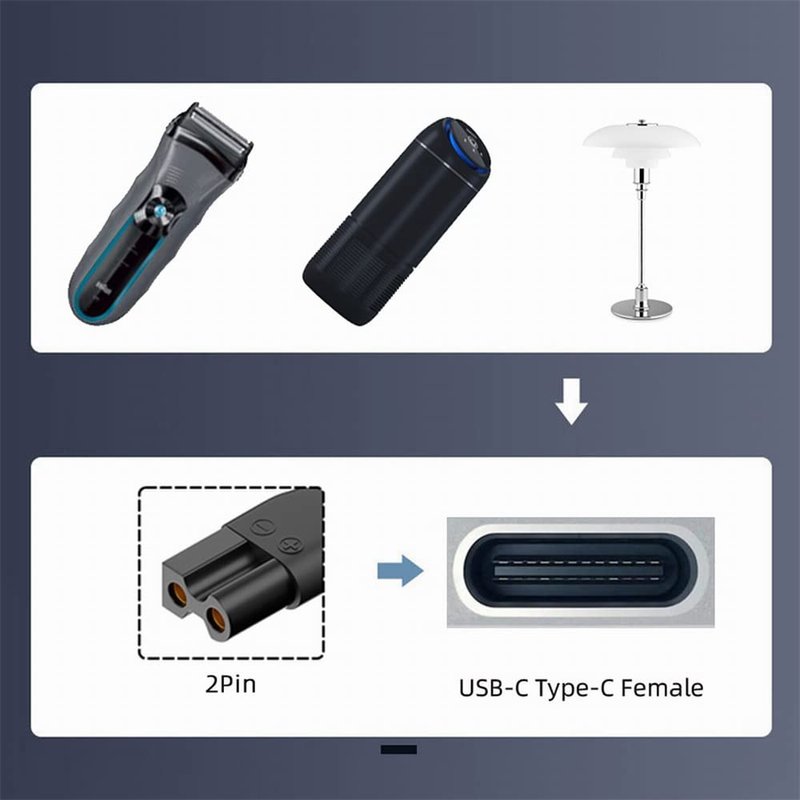 xiwai 6 PCS Replacement Power DC 5V Charger USB Adapter USB-C Female to 2Pin for Electric Hair Clippers, Beauty Instruments, Beard Trimmers, Shavers