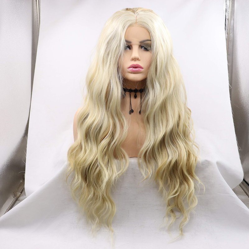 xiweiya Highlighted Blonde Wigs Long Loose Wavy Mixed Color Blonde Gold Synthetic Lace Front Wig Pre Plucked 13x4 Lace Wig Natural Hairline Heat Resistant Fiber Wigs for Women
