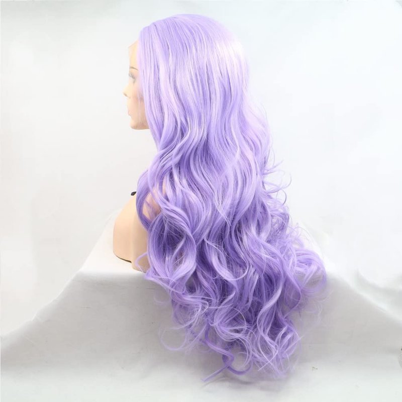 xiweiya Lilac Purple Lace Front Wigs for Women Makeup, Long Wavy Lavender Purple Hair Wig with 13x3 Lace Natural Hairline Realistic for Drag Queen Halloween Cosplay Wigs