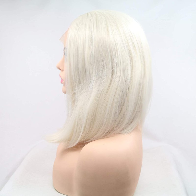 xiweiya Short White Blonde Wigs Blonde Platinum Synthetic Lace Front Wig 13x3 Lace Wig Glueless Soft Wigs Natural Hairline Wig Heat Resistant Hair 180% Density Wigs for Women 14inch