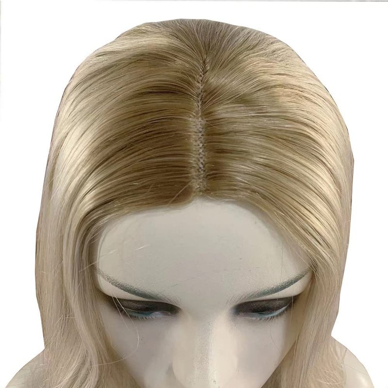 xiweiya Wigs Long Silk Straight Ombre Blonde Wig Synthetic Machine Made Wig Silky Full Heat Resistant Fiber Hair Middle Part Wig Two Tone Wig Free Wig Cap for Women 24 Inches