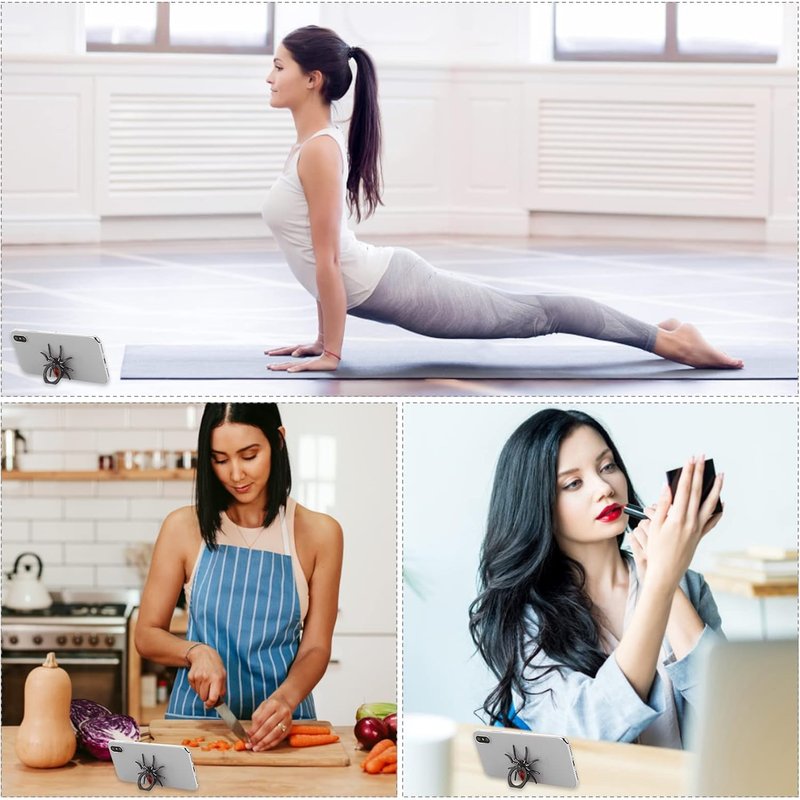 - The cool spider phone ring stand holder and prevents your phone from dropping & reduces the risk of theft, providing all around protection for your phone. You can easily mount your phone on the flat surfaces like desktop, kitchen and bed to watch movies with your hands free.