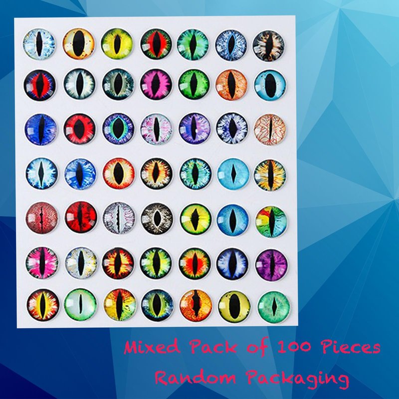 XIYONALI 100PCS Eye Beads Nail Charms, 3D Crystal Animal Decoration, Medium Acrylic Rhinestones, Round Nail Art Accessories for DIY Manicure (0.31in)