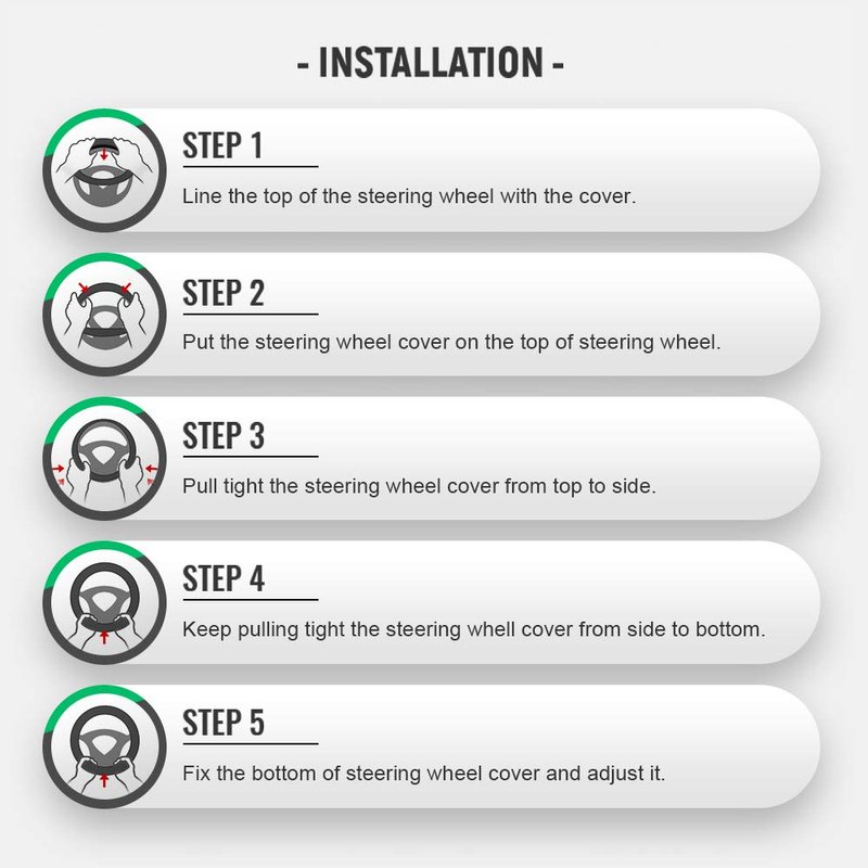 For ease of installation, please preheat the steering wheel cover in the sun or uses a hair dryer to heat it for 3-5 minutes. So you can install it easily.