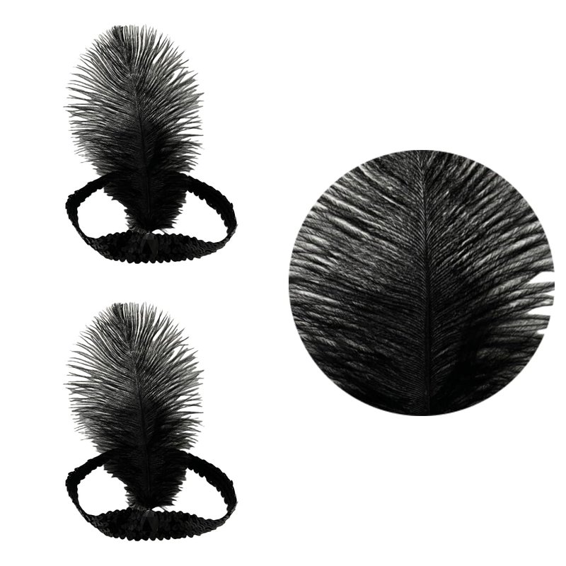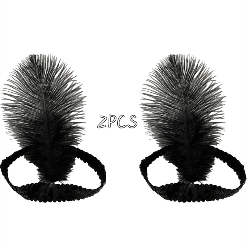 XKTEI 2pcs Feather Headdress,Sequins Headband,1920s Flapper Headpiece,Carnival Party Headwear,Costume for Gatsby Theme Party,Mardi Gras Feather Headband (Black-1)