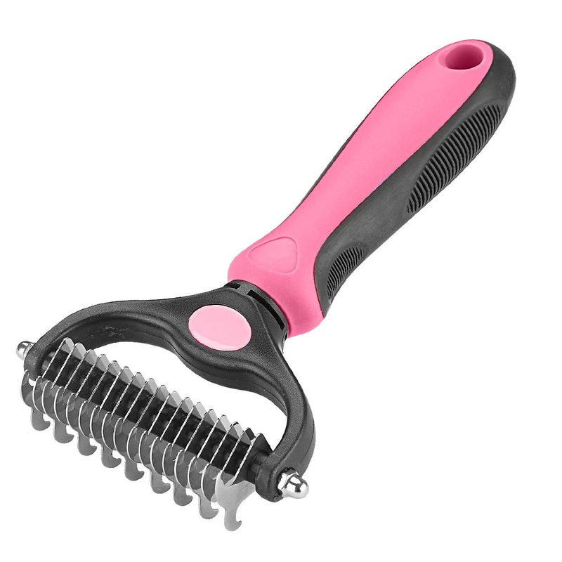 - EFFECTIVE DEHEDDING TOOL:This undercoat rake gently removes loose hair, and eliminates tangles, knots, dander and trapped dirt.Perfect solution for dogs and cats with thick fur or dense double coat care