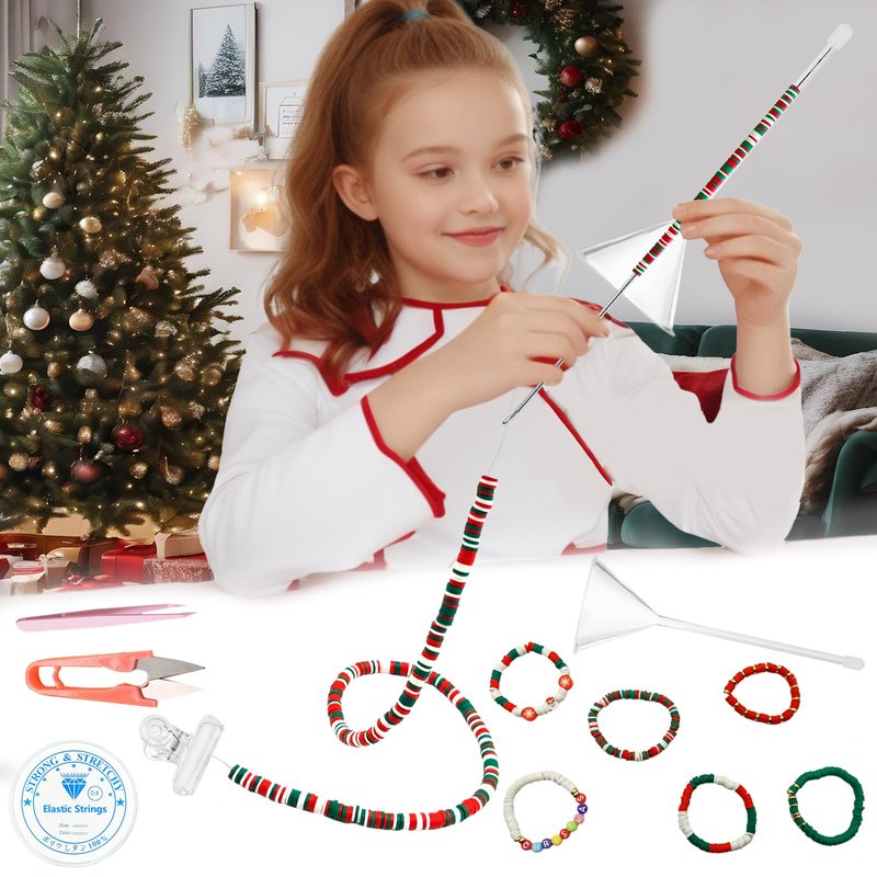 - 1. Beading set: This clay beading kit comes with 2 beading funnels, 2 plastic tubes (7.87 inches), 2 beading needles (10.43 inches), 2 bead stoppers, 1 clip, 1 roll of elastic rope.