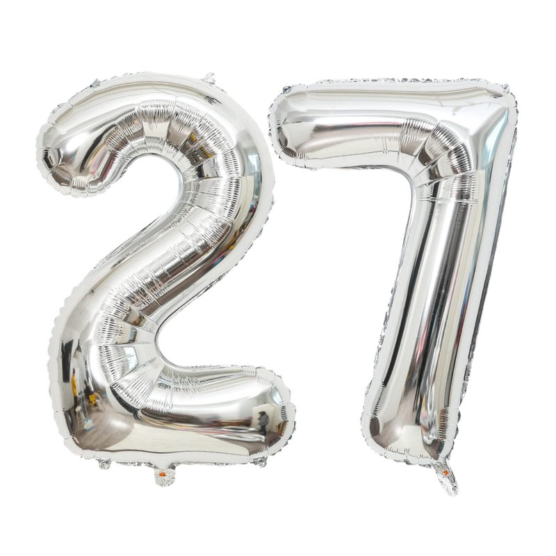 XXL Silver Number 27 Balloon - 32 Inch | Silver 27 Birthday Balloons, 27th Birthday Decorations |27 Ballons for Birthdays | Silver 27 Balloon Number |27 Year Old Balloon, 27th Birthday Decorations. Material: Aluminum Foil; Quantity: 2pcs/pack; Color: Silver; Size : Before inflated diameter approx. 32". Package Includes: 32 inch Silver Number "27"; 1x Ribbon (5mm*10m);