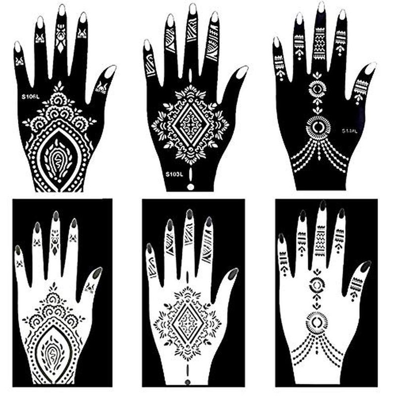 - Pasting position- Hand, Finger, 1 Set = 5 Left Hand + 3 Right Hand + 8 sheet Both Right and Left hands henna stencils. Suitable for Henna, Airbrush Painting, Glitter tattoo, Juice tattoo and so on.
