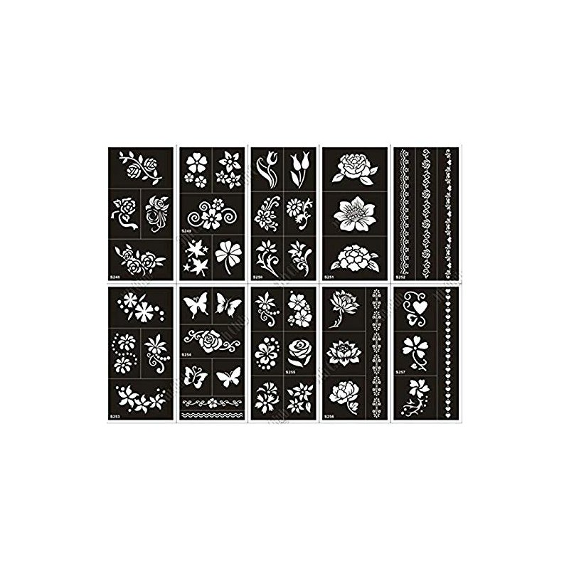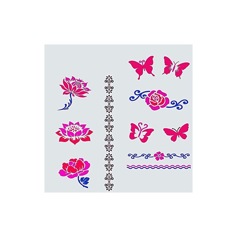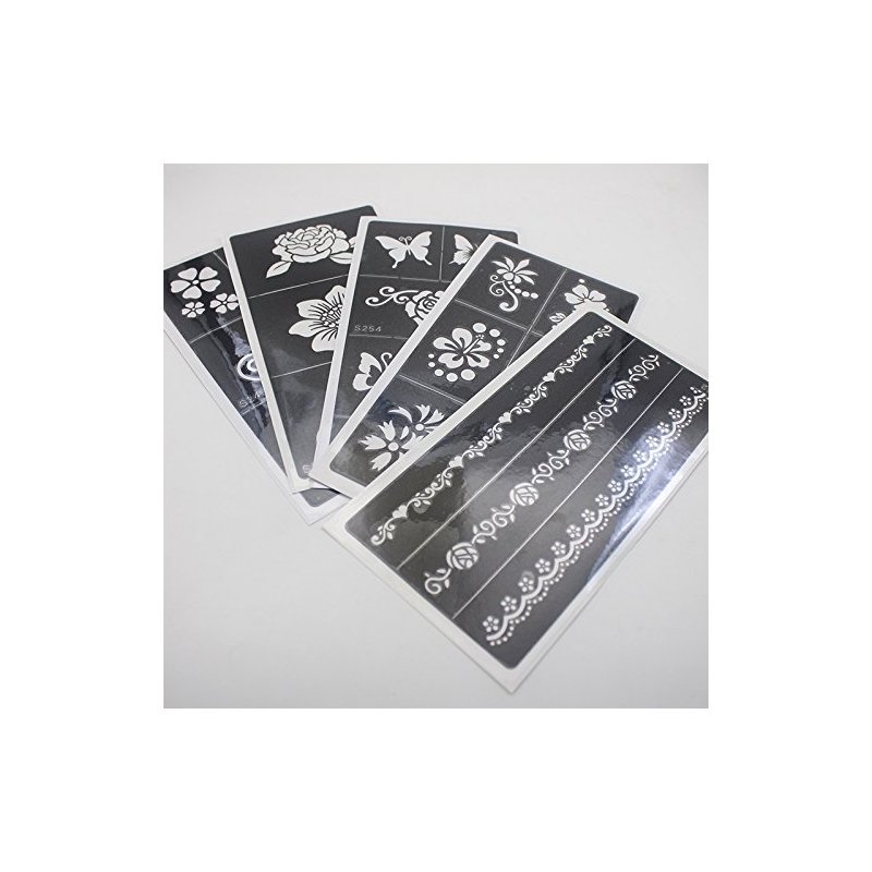Xmasir Pack of 10 Airbrush Henna Tattoo Stencil for Women Hand Finger Face Body Painting Kids Glitter Tattoo Templates 18 X 8.5cm (1)